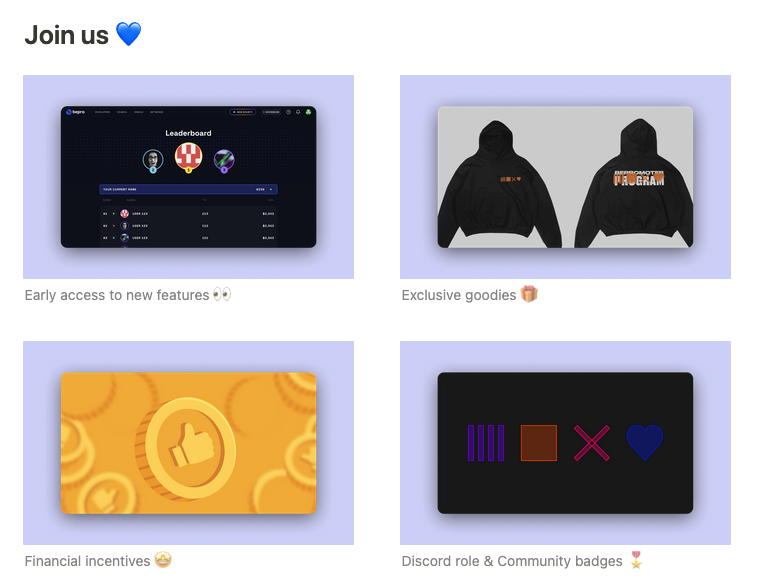 Isso pode ser feito por meio de benefícios como acesso gratuito e exclusivo ao conteúdo, posições de teste beta, merchandising e outras vantagens não financeiras. E, claro, você sempre pode recompensá-los com seu próprio token.