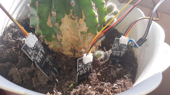 Sensores (usando uma função de câmera), sensor de luz, sensor de temperatura e umidade ambiente, sensor de umidade do solo e sensor de nível de água;