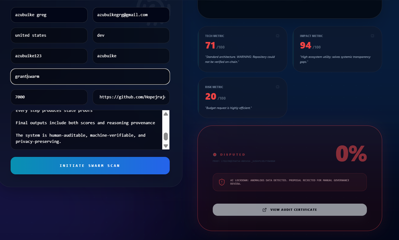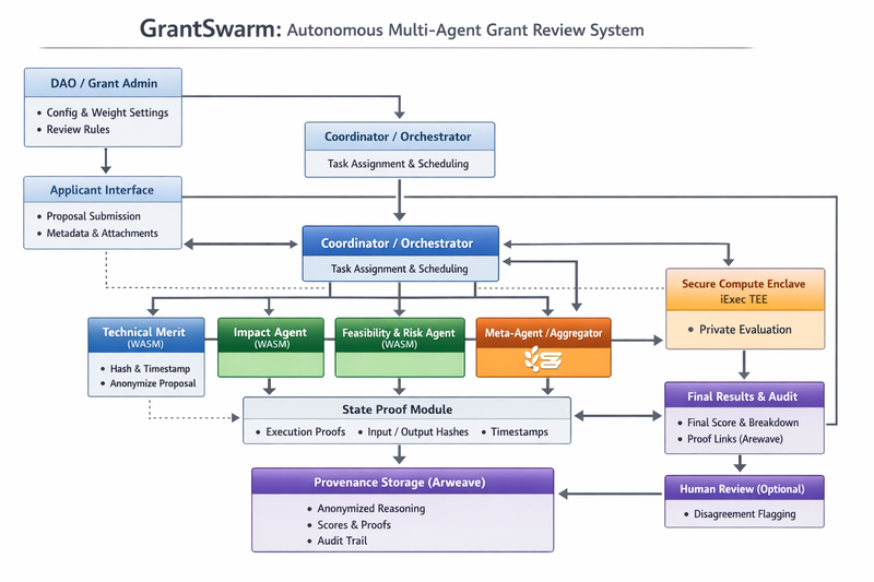 GrantSwarm is a verifiable decision infrastructure for capital allocation, where: