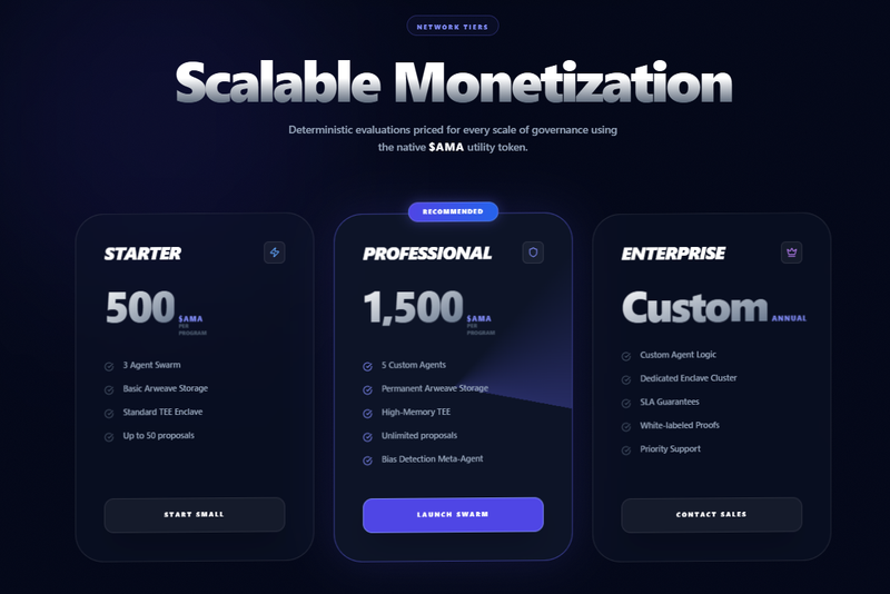 Deterministic Consensus: Logic is not "black-box." Scores are derived from a multi-agent swarm (Technical, Financial, Ecosystem).