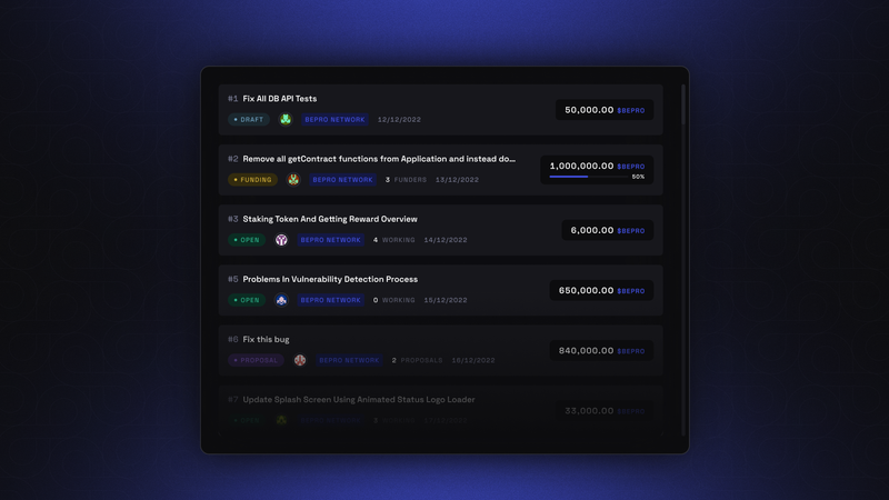 Through Bepro’s bounty platform, you can discover new projects to contribute to and get paid for your work.