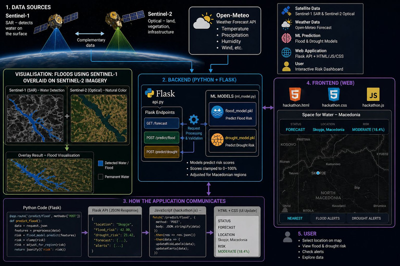 Water-related disasters such as floods and droughts are becoming more frequent and harder to predict due to climate change. Traditional monitoring methods are often slow, localized, or limited in coverage.