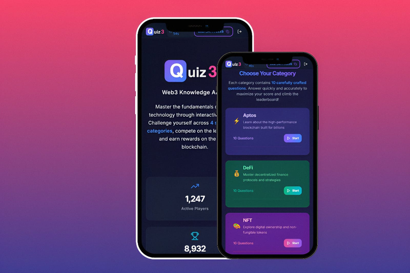 Quiz3 is a cutting-edge Web3 trivia application that combines education with gamification. Built on the Aptos blockchain, it offers an immersive learning experience for Web3 enthusiasts through interactive quizzes, real-time leaderboards, and APT token rewards.