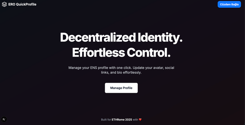 ERO QuickProfile: Your ENS identity, simplified. Update all your profile records (avatar, bio, socials) in one click and one single transaction using multicall.