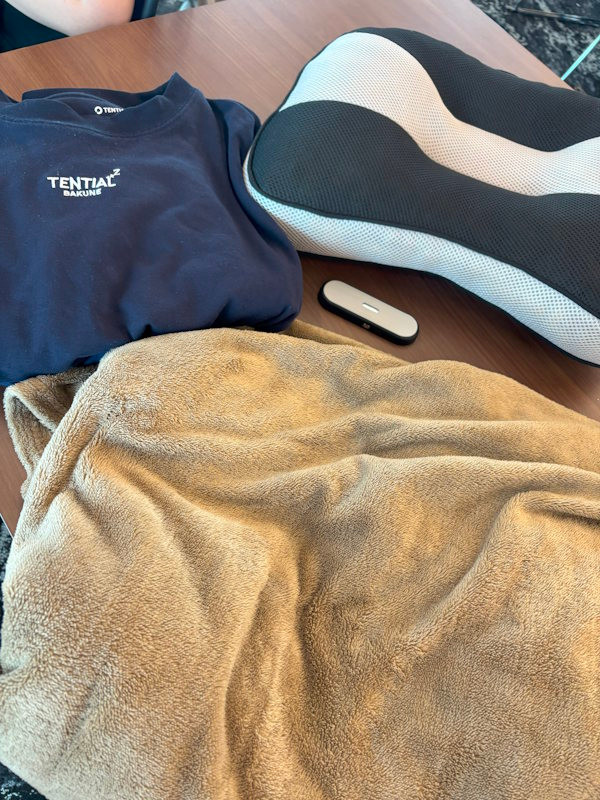 This time, I brought a pillow and blanket, a bone conduction speaker for the microphone, and recovery wear (pajamas) so that you could experience falling asleep.