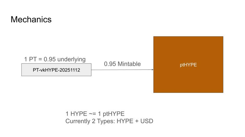 The mechanics of Peachtea is simple. Users deposit their PTs and mint their present values of pt{Asset}. For example, when 1 PT-vbHYPE-20251112 is worth ~0.95 HYPE, it can mint 0.95 ptHYPE. Currently there are ptHYPE and ptUSD, but Peachtea is designed to add more when more came live on HyperEVM Pendle.