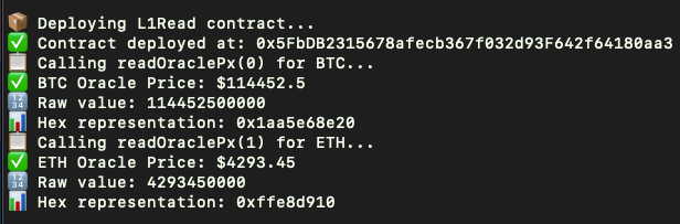- Successful testing of L1Read.sol contract with latest data from main net