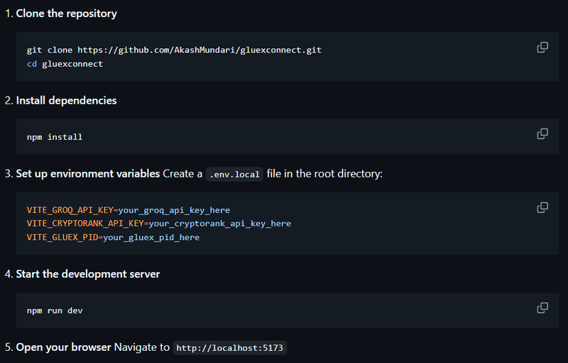 What makes GlueX Connect unique is the seamless bridge between complex DeFi operations and natural human communication. Traditional DeFi interfaces require users to understand contract addresses, gas optimization, and cross-chain mechanics. Our AI assistant abstracts this complexity, making advanced strategies accessible to mainstream users while maintaining the security and decentralization principles of Web3.
